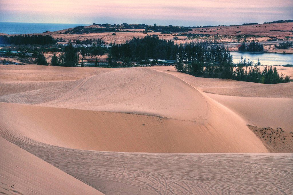 Ngoài biển xanh, những đồi cát mênh mông trải dài như bất tận là điểm đến không du khách nào bỏ qua khi đã có dịp đến Mũi Né. Người ta ước tính được cát có hơn 18 màu sắc thay đổi theo ngày và giờ tạo nên bức tranh thiên nhiên huyền ảo. Người ưa vận động có thể chơi trượt ván cát hoặc phi xe tốc độ trên đồi cát.